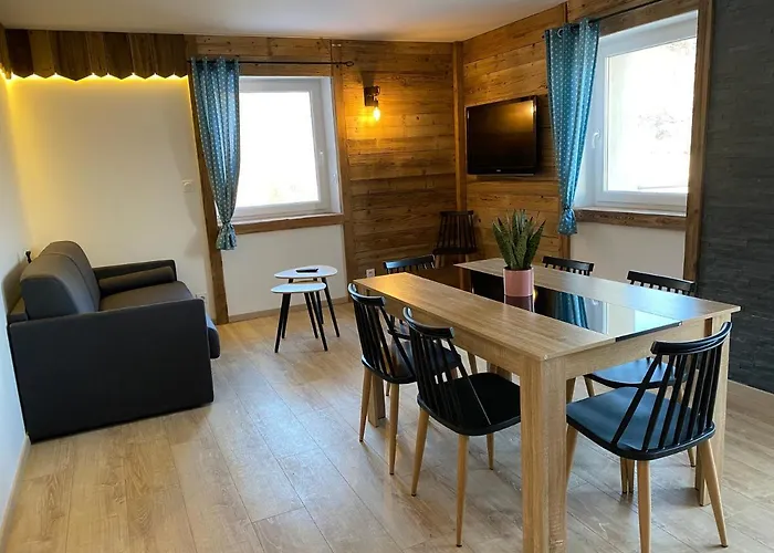 The spacious 74 m^2 Le Cocon D'Emma Apartment is located in La Bresse, 3.2 km from Grand Haut Ski Lift, and pampers guests with a Jacuzzi and a sauna. 10 minutes' drive from the 2-bedroom apartment you will find La Mauselaine.
